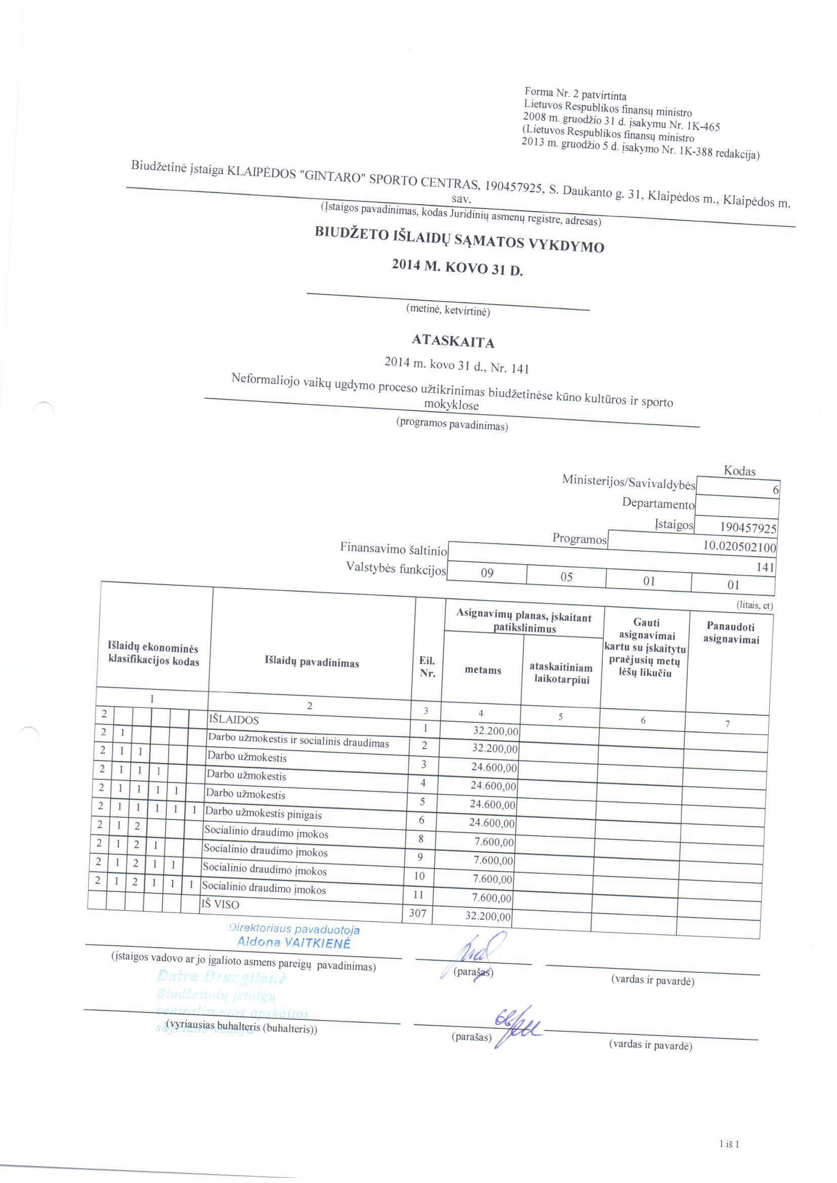 Neformalaus ugdymo lėšų 2013 metų likučio biudžeto išlaidų sąmatos vykdymo ataskaita už 2014 m. II ketvirtį